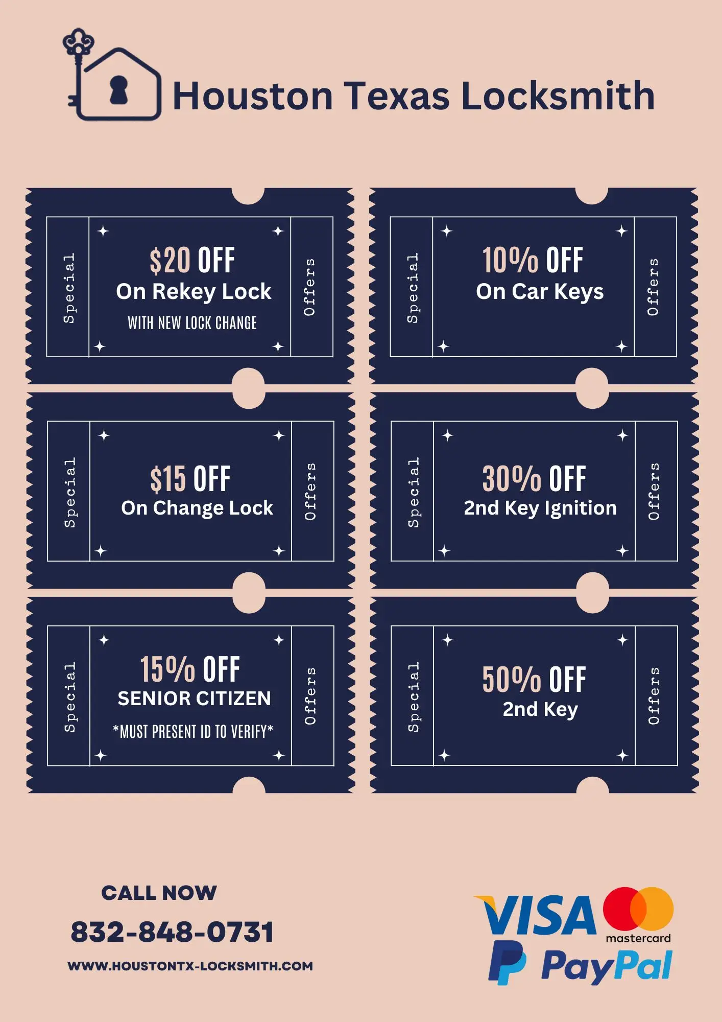 Houston Texas Locksmith Residential, automotive and commercial clients are served by us. We impart secure locking solutions, 24hour emergency operations and specialize in car key replacement, ignition repair and transponder programming. Let's get you back on track. Contact us now.